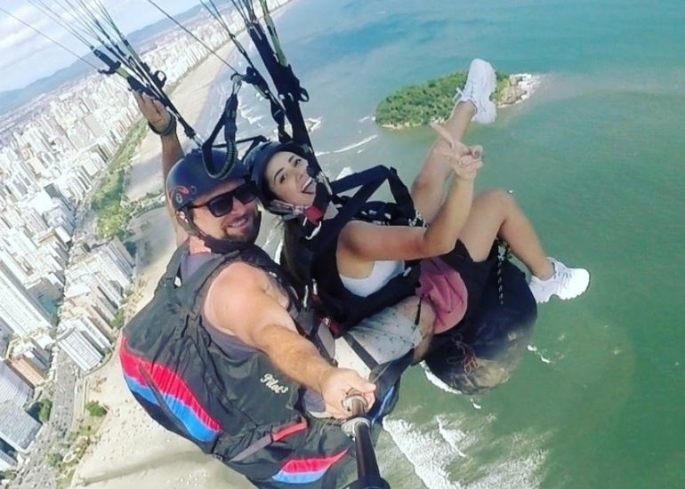 Experimente a sensação de voar sobre as árvores e sobre o mar em um único passeio. Decolando do alto do Morro do Voturuá, na divisa entre Santos e São Vicente, no litoral de São Paulo, o voo duplo de parapente é emocionante, inesquecível e seguro.